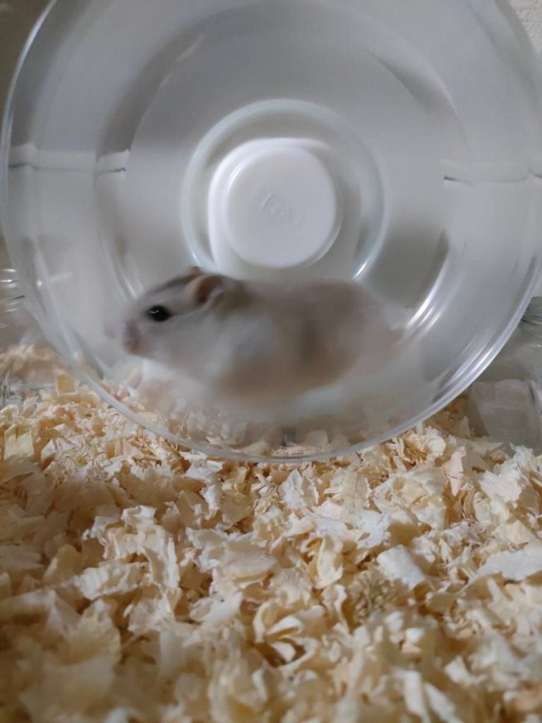 回し車も入れてあげて、運動不足にならないように工夫しています。